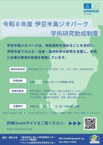 ユネスコが認定する世界的価値を有する「大地の遺産:伊豆半島」を対象とした研究を支援し、査読を経た学術論文の蓄積を図る目的で、調査・研究にかかる経費を助成します。